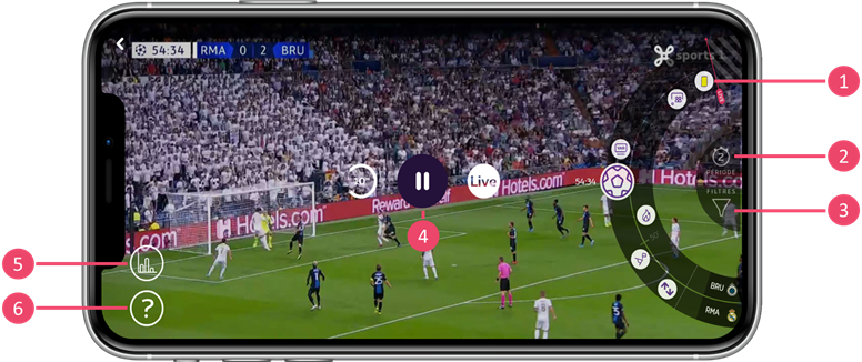 L'expérience interactive permet de regarder sur l'app Pickx certains programmes sportifs avec un écran enrichi de possibilités spéciales.